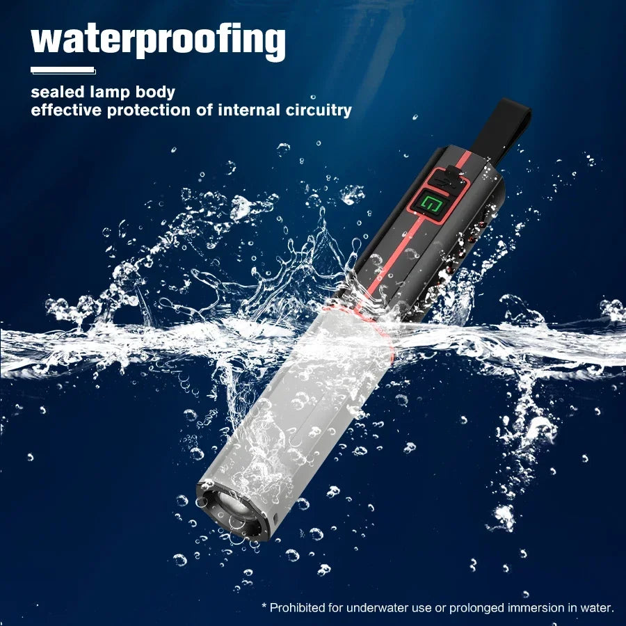Mini linterna portátil Zoom telescópico Correa de mano Atenuación de tres niveles Disipación de calor de aleta