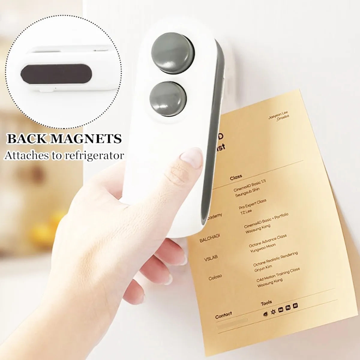 Diseño compacto y portátil: Ligero, fácil de llevar y almacenar. Se puede fijar al refrigerador gracias a su parte magnética.